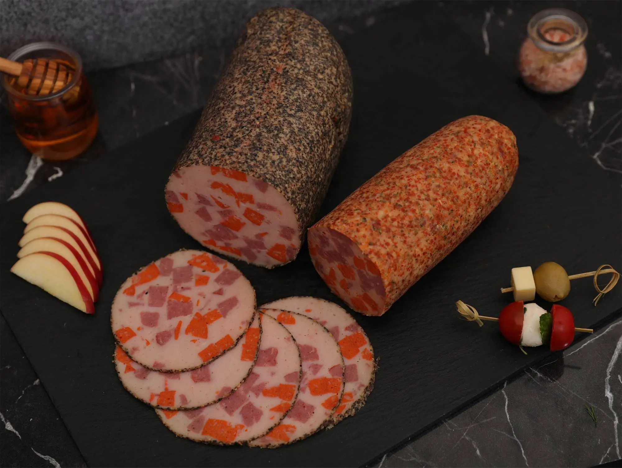 Notre charcuterie fine se démarque par sa diversité et son raffinement, avec des créations comme le jambon mosaïque ou le jambon fleuri farci. Notre maison vous propose une sélection alléchante de charcuteries artisanales qui font la renommée de Pépi’s : bresaola, bâton de berger, pastrami bœuf ou dinde… avec des saveurs uniques pour le plus grand plaisir des gourmands.