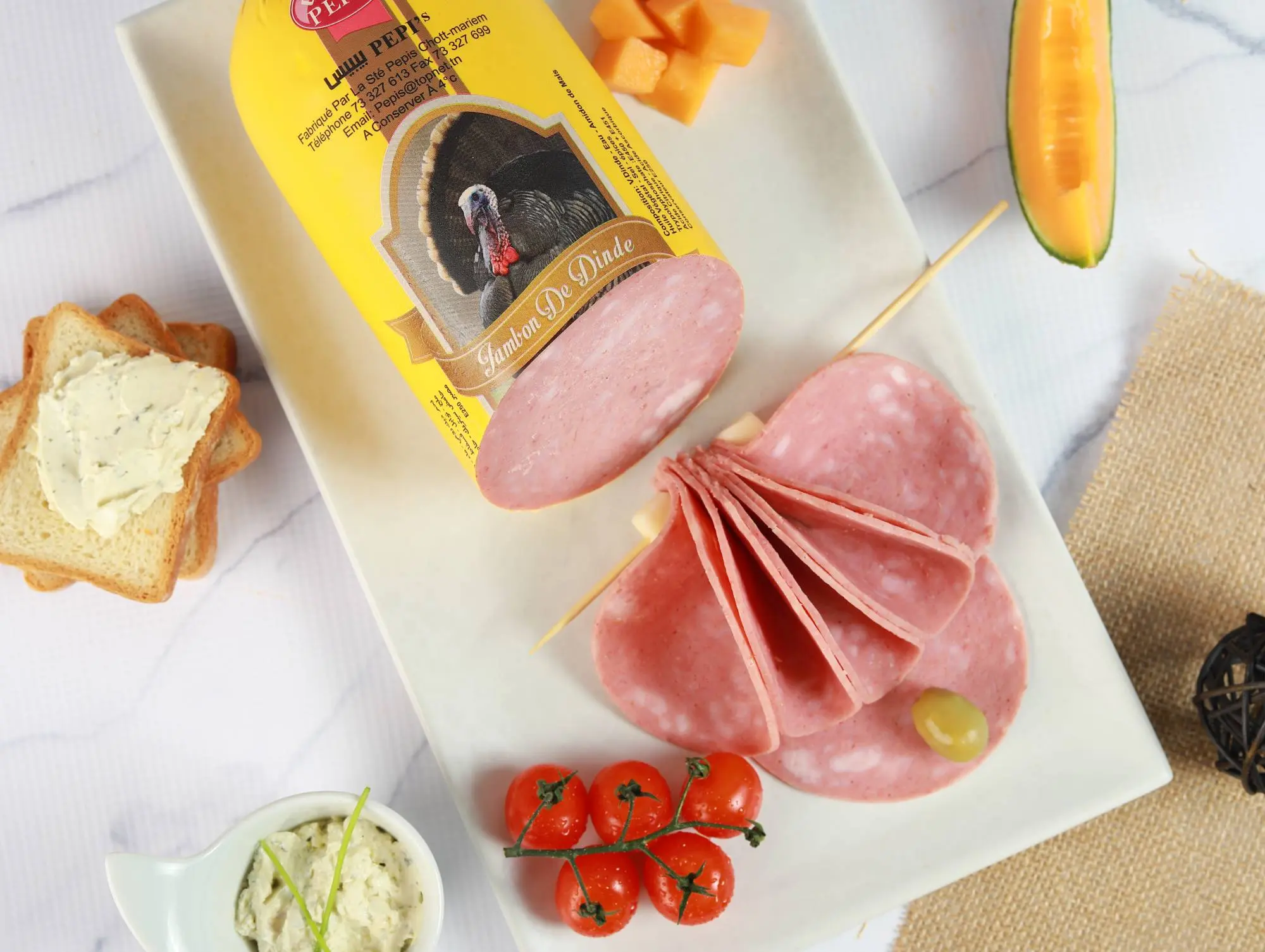 Découvrez nos produits phares à base de viande de volaille: chorizo dinde, mortadelle de dinde, jambon de dinde fumé… Autres spécialités volaillères de la maison Pepis: le jambon de Paris ou l’escalope de dinde fumé à déguster sans modération.