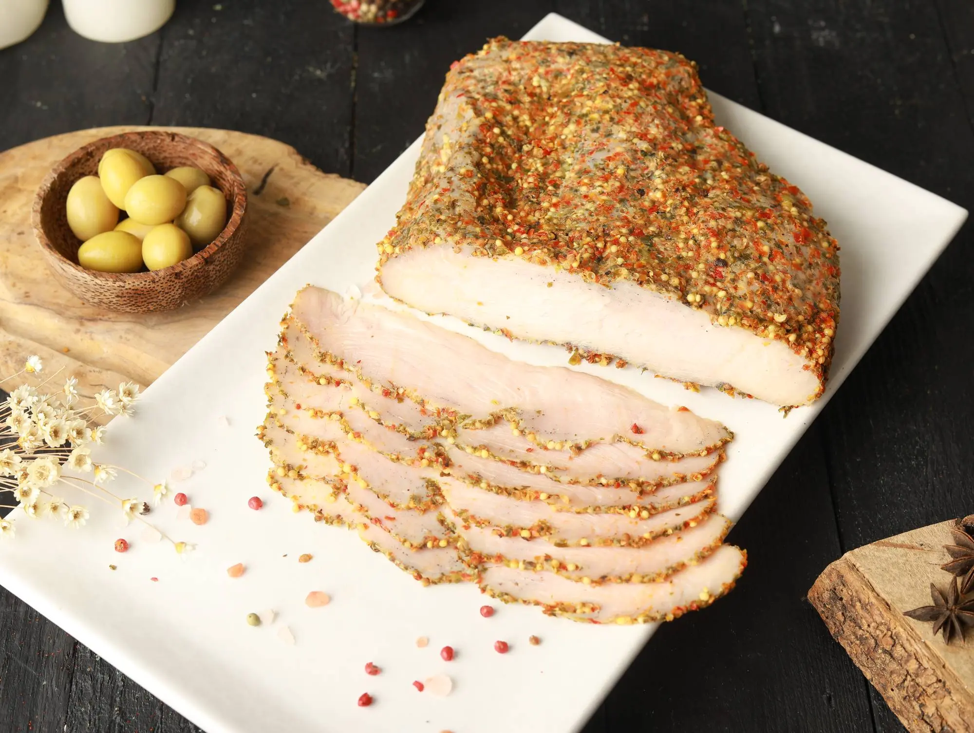 Notre charcuterie fine se démarque par sa diversité et son raffinement, avec des créations comme le jambon mosaïque ou le jambon fleuri farci. Notre maison vous propose une sélection alléchante de charcuteries artisanales qui font la renommée de Pépi’s : bresaola, bâton de berger, pastrami bœuf ou dinde… avec des saveurs uniques pour le plus grand plaisir des gourmands.